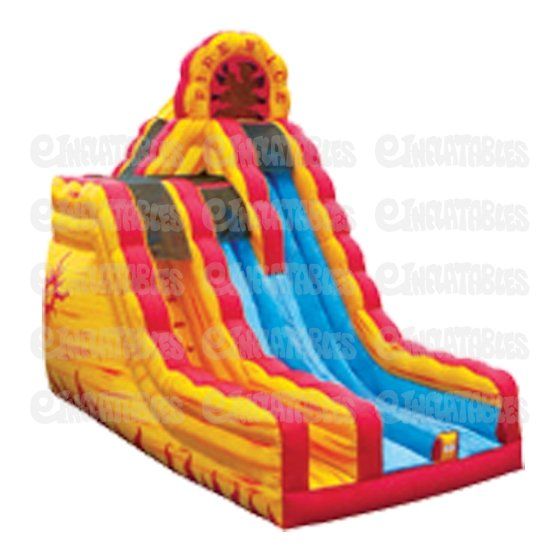 Our 20-foot-high Fire n Ice Dry Slide is a brightly colored, two-story slide that lets the participants choose from what height they want to slide down. Make sure you are wearing your sunglasses when looking at this awesome unit.
