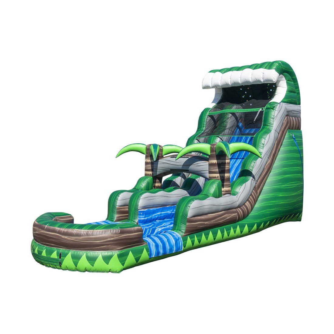 Our Emerald Crush Water Slide with an extra-wide sliding lane will add a tropical feel to any party or event. It's like "Man vs. Wild" in your backyard.